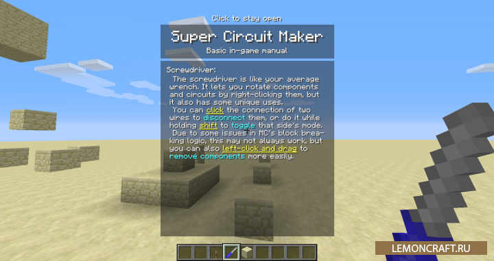 Используя инструменты и блоки из этого мода, вы сможете создавать редстоун схемы на небольших печатных платах, размером 7x7. Теперь вы сможете сделать сложную схему на 1 блоке.