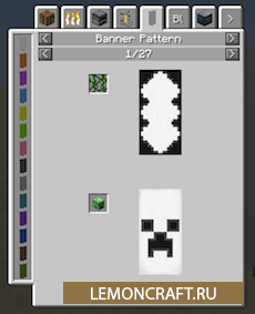 С помощью JEPatternBanner вы сможете посмотреть рецепты создания узоров на флаге. На данный момент вы можете увидеть рецепты всех ванильных узоров и узоров из мода Immersive Engineering.