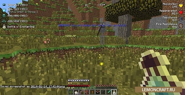 Мод изменит интерфейс minecraft специально для PvP боев, на экране будут показаны здоровье, урон и действующие эффекты, а нажав кнопку F ты сможешь быстро пополнить здоровье.