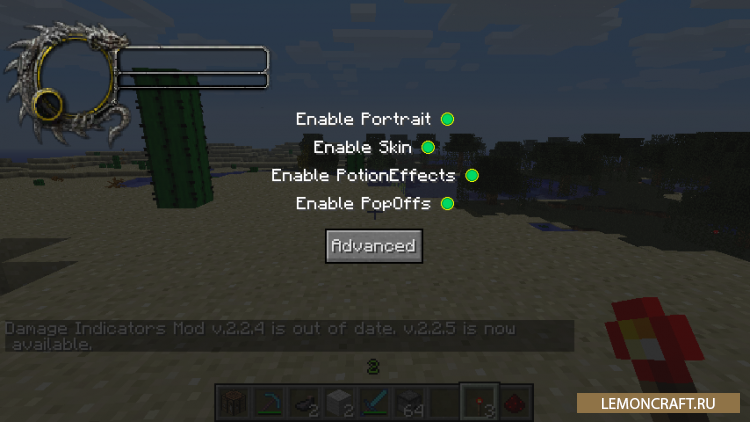 Мод на информацию о мобе Damage Indicators позволит вам получить полную информацию о мобе, которого вы видите. Для получения информации наведите курсор мыши на моба и в верхнем левом углу появится табличка содержащая шкалу здоровья, модель, нанесенный урон, и эффекты, которые действуют на моба.